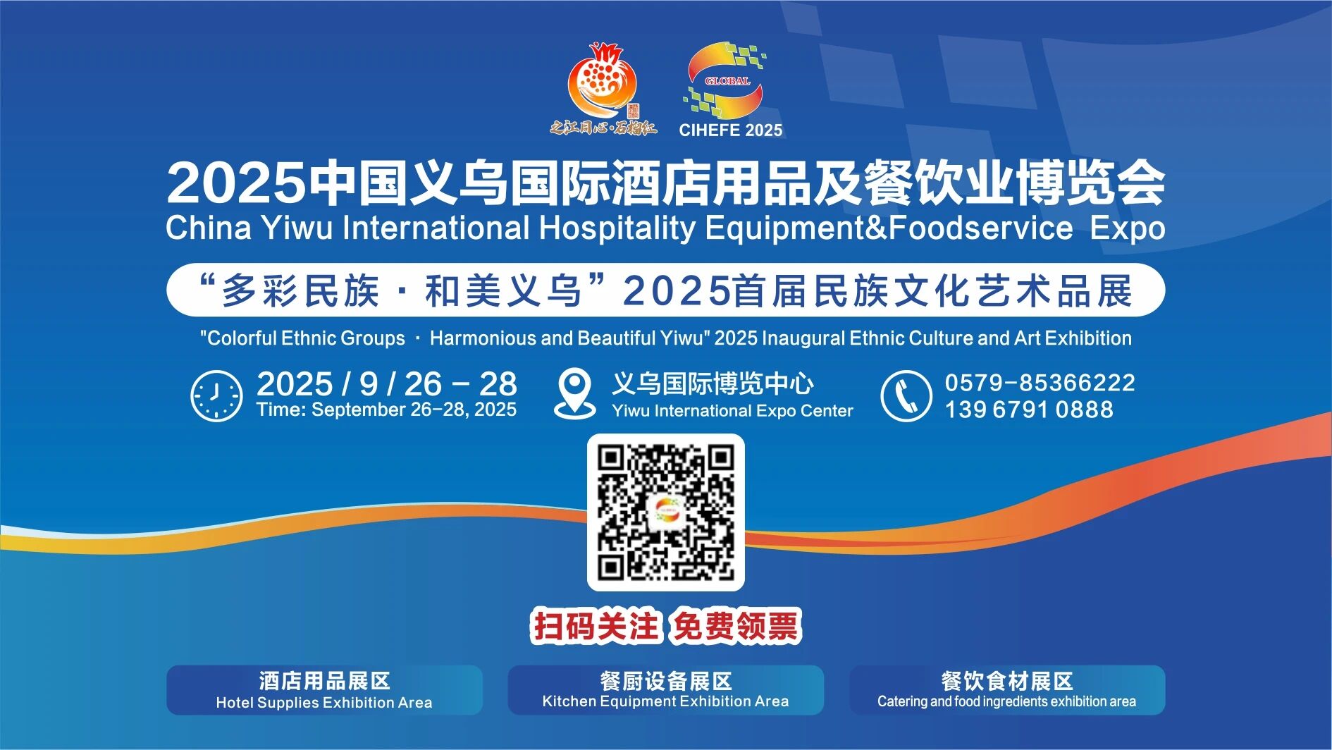 还有最后3天!一场民族文化与商业盛宴即将在义乌国际博览中心精彩绽放!2025中国义乌国际酒店用品及餐饮业博览会进入最后倒计时,而其中最令人期待的"多彩民族·和美义乌"2025首届民族文化艺术品展也已准备就绪,将于9月26日闪亮登场!义乌:56个民族共同家园的生动缩影义乌,这座被誉为"全国少数民族流动人口服务管理示范城市"的现代化都市,虽无民族乡、民族村,却在改革开放的浪潮中,随着小商品经济的蓬勃发展,吸引了全国各族群众纷至沓来。如今,32.39万少数民族人口在这里安居乐业,56个民族成分齐全,使义乌成为东南沿海典型的输入型少数民族散杂居地区,生动展现了中华民族多元一体的宏大格局。重磅剧透!三大亮点抢先看亮点一:56民族大团结打卡墙组委会特别设计的56民族大团结大融合打卡墙将成为展会最热门的互动点!这面寓意深刻的艺术墙展现了各民族相亲相融的和谐画面,必将成为观众必到的打卡胜地。带上手机,留下与56个民族的美好瞬间!亮点二:民族文化卡通展板展区精心陈列的56个民族文化卡通展板,以生动有趣的卡通形式展现各民族服饰特色和风俗习惯。让多彩炫丽的民族文化变得直观易懂、美美与共,必将带给观众耳目一新的观展体验。亮点三:非遗精品荟萃“梁昱鉴赏”高温窑变瓷艺术精品流光溢彩,彤云·石榴红家园非遗绣品精美绝伦,"武义畲韵" 系列产品独具特色……这些凝聚着民族智慧的非遗精品将在展会上争相辉映,展现中华民族文化的深厚底蕴。9月26-28日,义乌国际博览中心,这场融合了民族文化与现代商业的盛会即将拉开帷幕。2 万㎡的展览面积,涵盖酒店用品、餐厨设备、餐饮食材三大领域,400+源头工厂齐聚义乌,10000+爆款新品惊艳亮相。逛展会、品美食、觅商机,还有机会参加超级大抽奖,赢取华为 mate60 手机一台。无论是行业从业者寻找商机,还是普通观众前来参观体验,都能在这里找到属于自己的精彩!观展酒店推荐以上为展馆周边酒店推荐,请尽早预订,以免房源紧张给您的出行造成影响。
