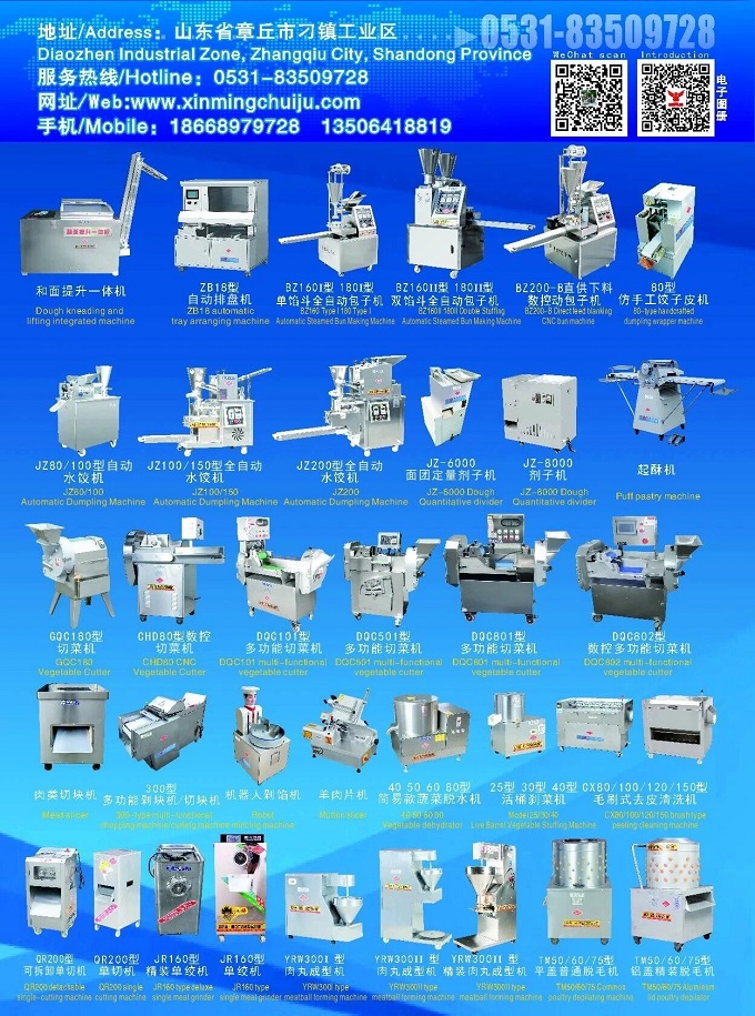 1.炊事机械:切菜机、和面机、绞肉机等(适用于食堂、酒店、企事业单位厨房); 2.酱菜机械:刹菜机、清洗机、推条机等(覆盖酱菜生产全流程);